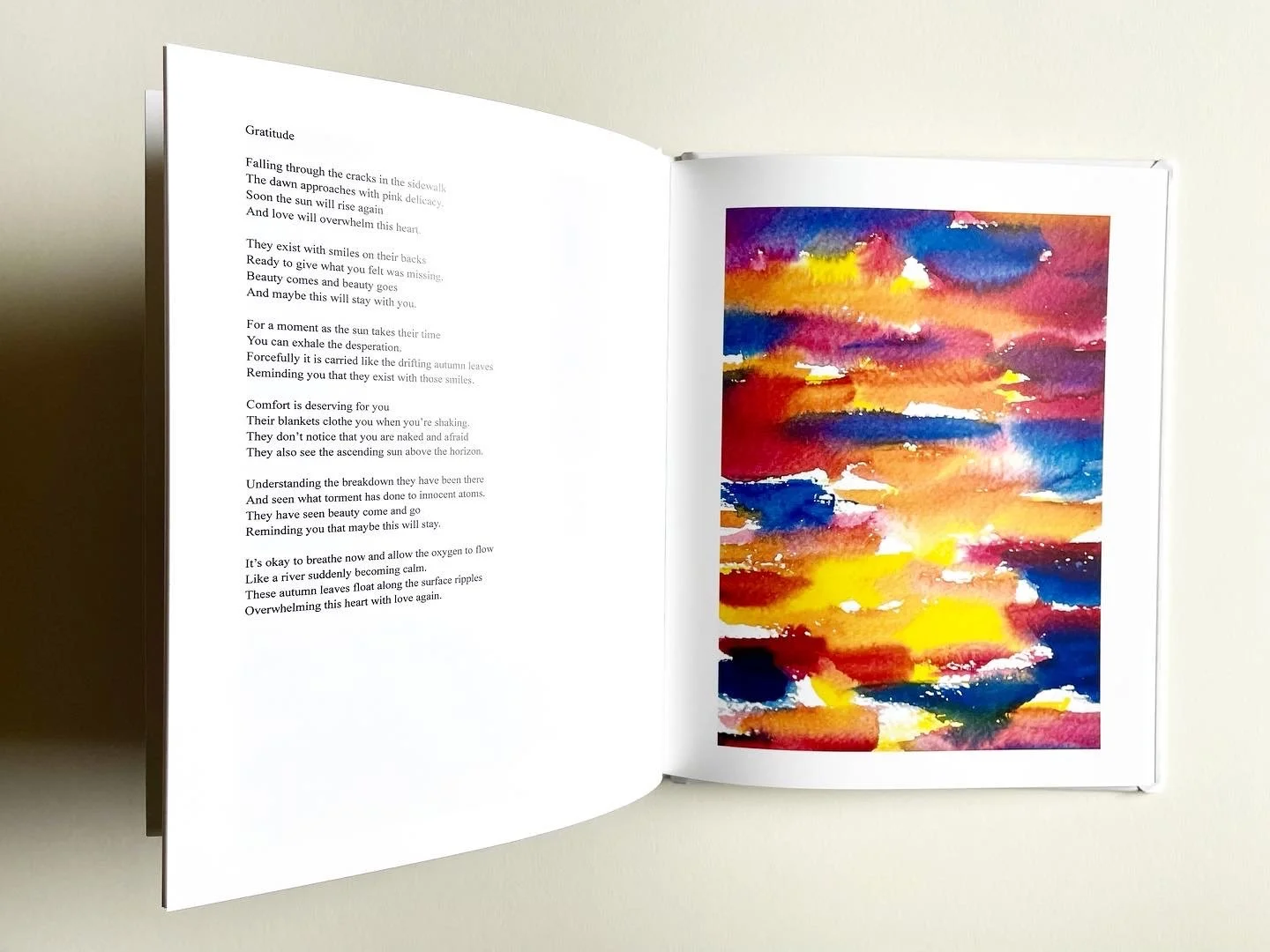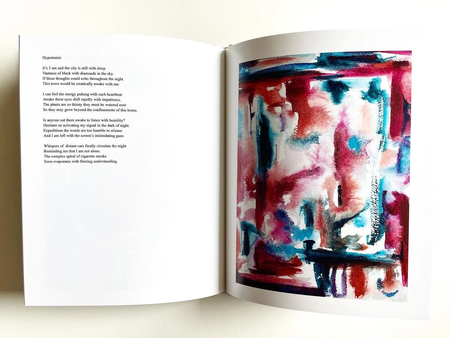 I am currently celebrating my first self-published book “Heart Vibrations.” It took a lot of courage, energy, and truth to write, self-publish a book. The book is a hybrid book of both poetry and paintings. Some of the paintings I have made in art therapy sessions. The poems are another outlet to keep my mental health in check.
